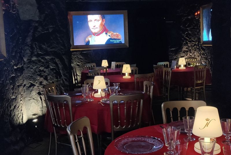 La Grotte Napoléon vous propose un concept novateur : une séance culturelle retraçant la vie de Napoléon Bonaparte, projetée sur plusieurs écrans dotés d’un système audio multi-langue et dans un décor unique. Séance vidéo : 40 min. Boisson comprise.